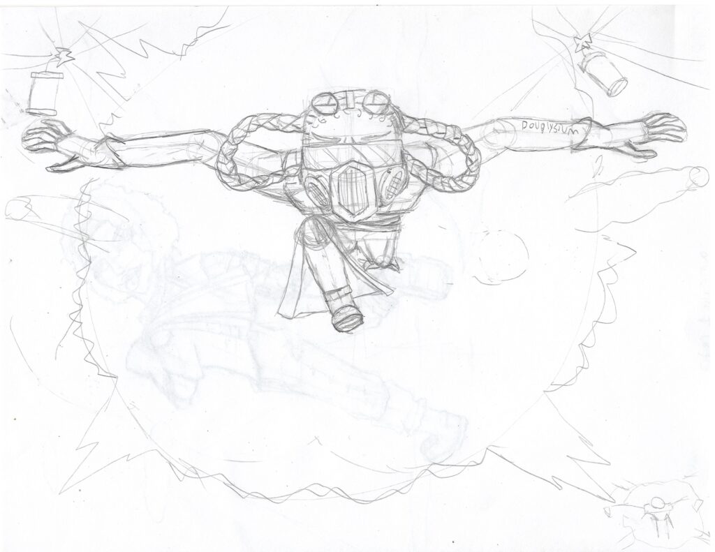 A drawing of @himarsaka’s OC Amari. I ended up making a bunch of variants. I ended up going with negative colors to represent luck being reversed.
