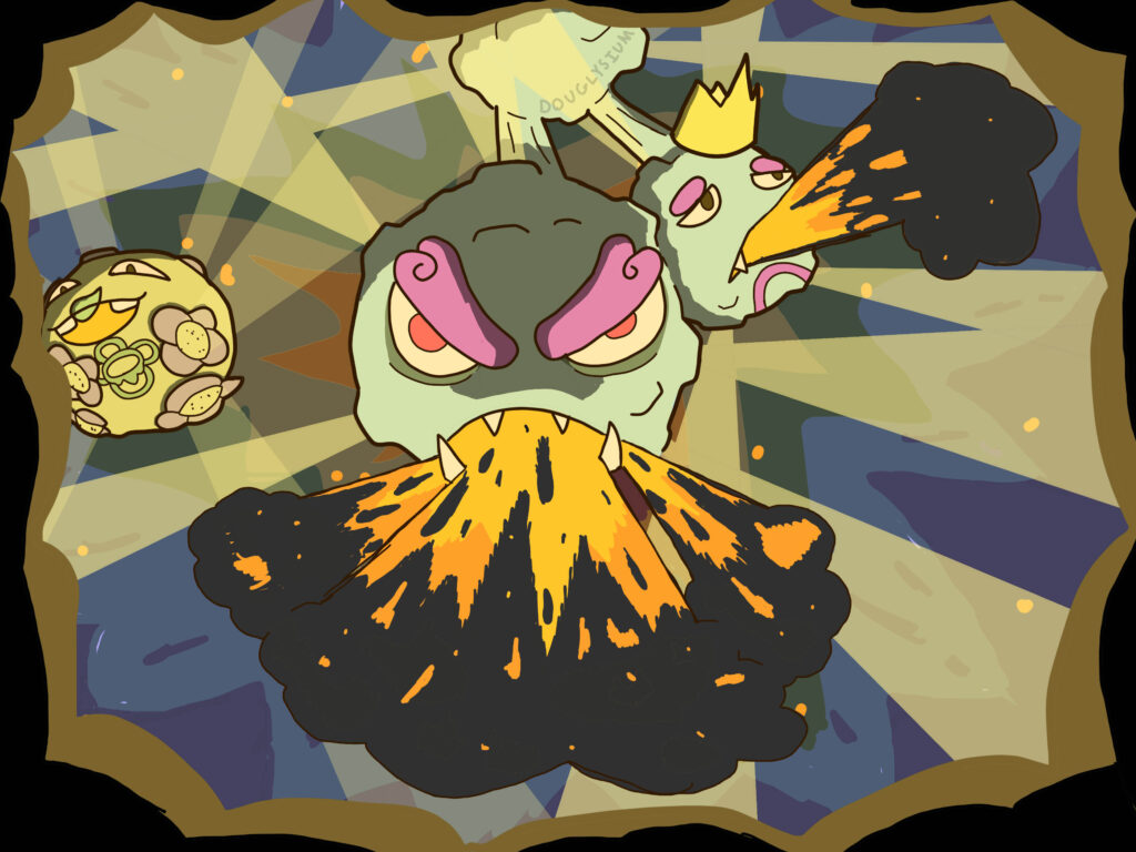 15: A flat version of the drawing with no shadows or lighting, but beams of light can still be seen emerging from Pipebomb and Koffing. Additionally, the smoke in the foreground has been removed.