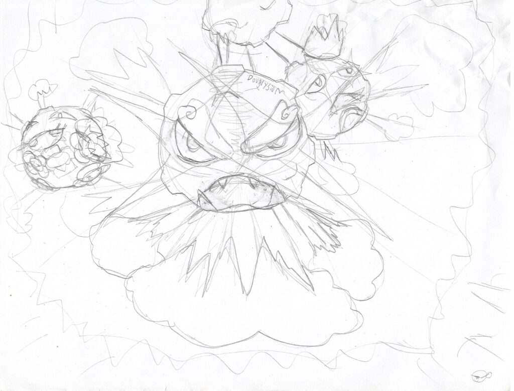 10: A version of the first drawing (1) in which the beams of light pouring out of Pipebomb are rendered opaque, but Koffing’s light is still the same transparency as before.
