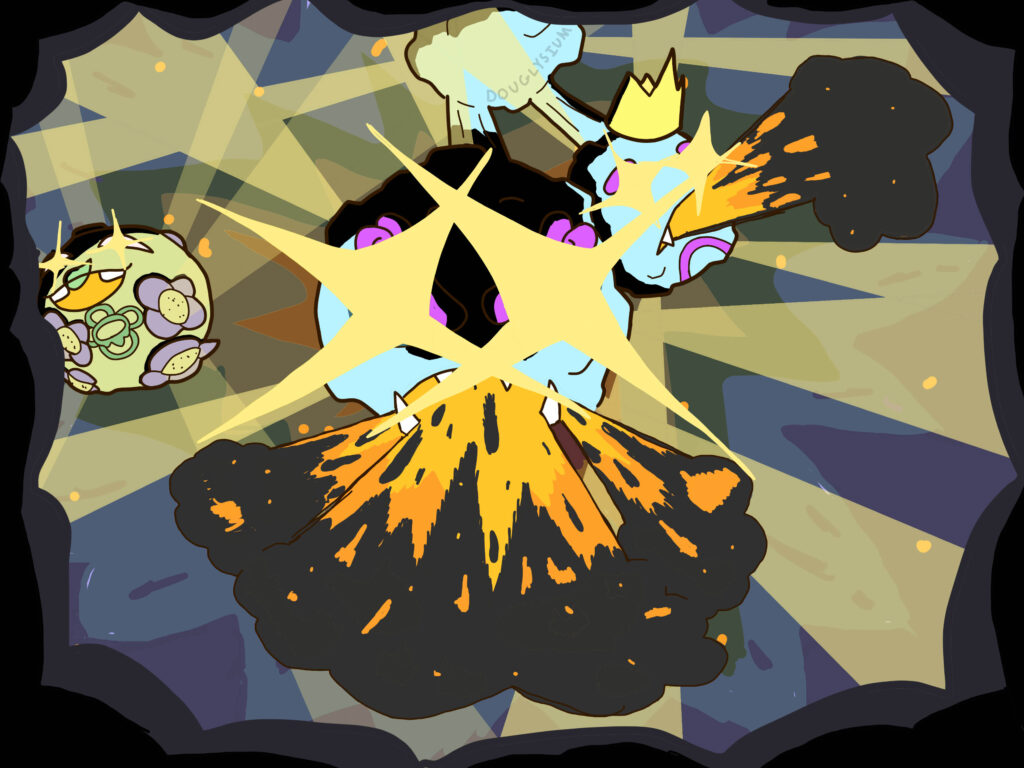I don’t know if Pipebomb knows the move Explosion, but he IS named Pipebomb for a reason right? I tried to avoid some of the more gruesome or painful depictions of a Pokemon using Explosion by just having Pipebomb releasing a powerful explosion, as opposed to blowing himself to bits or something. Petrel’s Twitter account is @Mtdewlord
