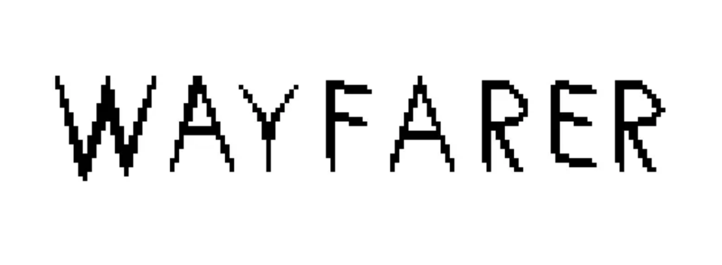 3: The word “WAYFARER” written out in pixel art. Each letter looks sharp. The letters here are black